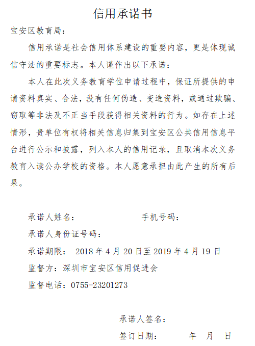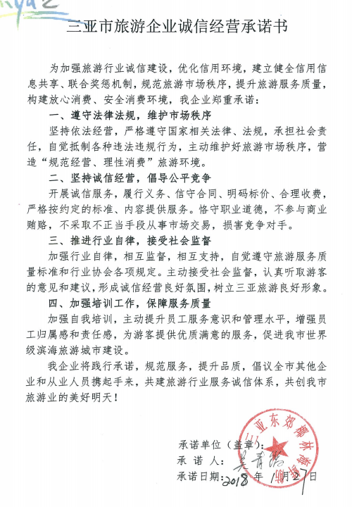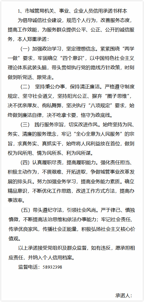 主题类信用承诺书
