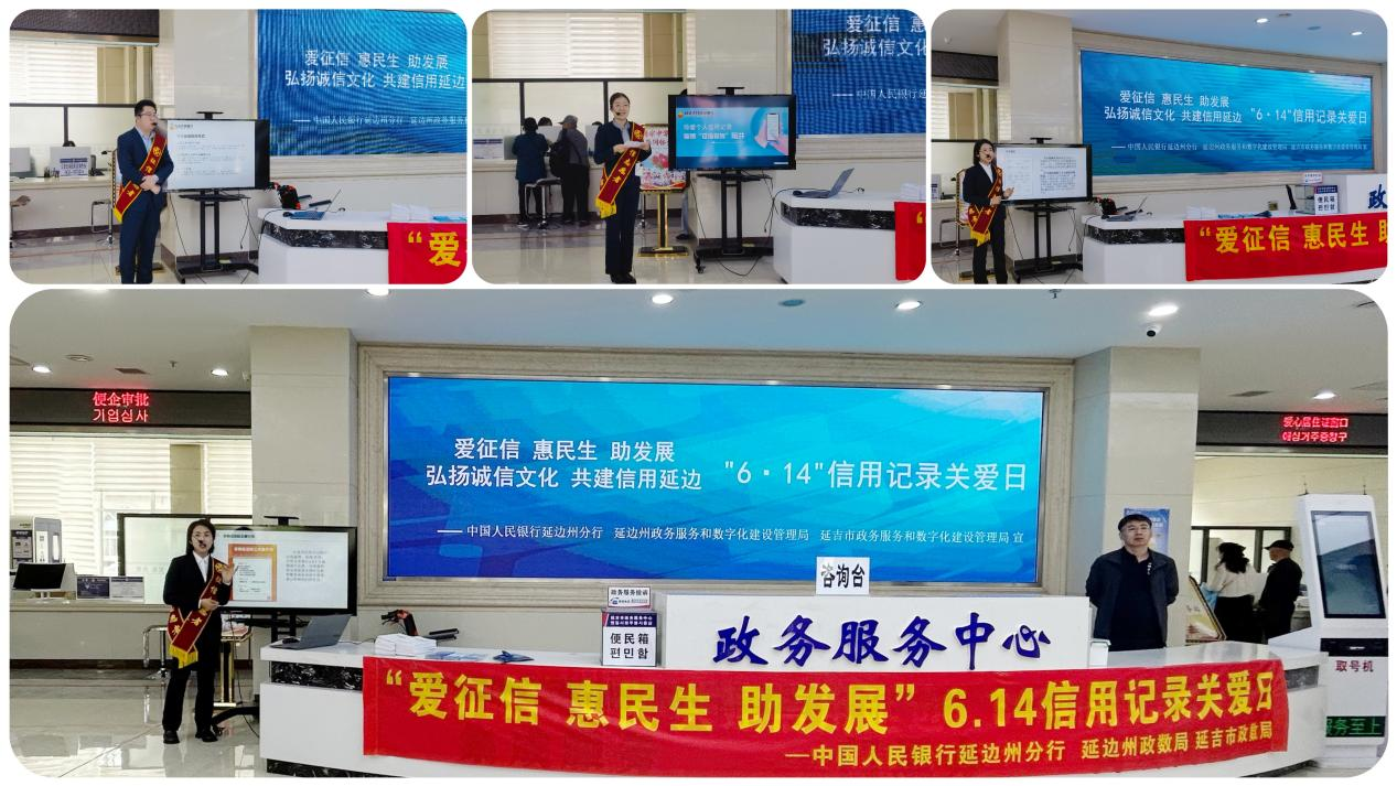 6月14日,延边州暨延吉市政务服务中心一楼大厅人头攒动,一场以“爱征信 惠民生 助发展”和“弘扬诚信文化,共建信用延边”为主题的信用记录关爱日宣传活动在此举行。此次活动旨在进一步提升社会公众对信用体系建设重要性的认识,推动诚信文化建设,助力地方经济社会发展。